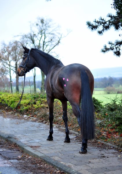 La cavalla premiata di 5 anni Valentiana è una femmina dal carattere sportivo, con molta presenza, grandi spazi e tre andature di base molto sicure e di buona qualità. Si distingue per la sua elevata maneggevolezza e un'ottima sensazione di seduta. Attualmente molto ben piazzata in una prova di monta - WN 8,0! Ha superato la prova di selezione delle puledre con il punteggio più alto per maneggevolezza tra i partecipanti. Durante il salto libero mostra chiarezza, gioia, capacità e stile. Ha un carattere meraviglioso, è molto piacevole da montare – estremamente affidabile e anche in campagna si muove con delicatezza. Un cavallo con cui potrete divertirvi molto! Noi lavoriamo con calma i nostri giovani cavalli, evitando deliberatamente presentazioni troppo stimolanti. Suo padre, His Moment, è stato il stallone vincitore alla selezione Trakehner e padre di tre stalloni approvati, oltre a diverse puledre premiate. Anche in sport si distinguono i suoi discendenti. Sua madre Valentine è una figlia molto moderna del prestigioso stallone TSF High Motion, vincitore di Grand Prix, e nipote del pluripremiato Showmaster, vincitore di Grand Prix e Grand Prix Special. Valentine ha già prodotto più volte puledri di alto livello nelle esposizioni di puledri. È sorella di Valpiano, di successo nella S-Dressage, e delle femmine premiate Vittoria, Veruschka, Vitalia I e II, e Valenta. Dalla famiglia di puledre di Hämelschenburg, Vilja di Julmond, provengono i rinomati stalloni Van Deyk (Grand Prix), Vincent, Valerian (vincitore di HLP, livello S in dressage, multieventi) e Velasquez (salto di livello M), oltre al cavallo di multieventi di Peter Thomsen, Vilano, che ha partecipato ai Campionati del Mondo.