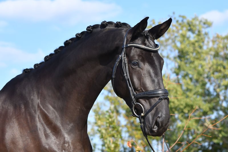 Diese ganz pompöse Rappstute mit Rahmen und Format füllt auch das große Viereck. Bei ungemein bedeutender Anlage des Körpers steht sie auf stabilem Fundament. Gut und lange gereift hat sie trotzdem noch viel Entwicklung vor sich. Reiterlich unkompliziert und ausgestattet mit einem Pedigree der Superlative: Vollschwester zum Siegerhengst Kaiser´s Erbe, Dreiviertelschwester zum Siegerhengst Kaiser Milton und dessen gekörtem Vollbruder Kavalli. Väterliche Halbschwester zu TSF Dalera BB und Millennium. Mutter Kaiser´s Els ist Vollschwester zu den beiden gekörten Grand-Prix-Hengste Kaiserkult und Kaiserdom sowie deren Vollbruder Kaiseradler, der auch im fortgeschrittenen Alter noch bis Grand Prix erfolgreich ist. Diese Referenzen sind schwer zu überbieten. Gute Röntgenbilder inkl. Rücken vorhanden.