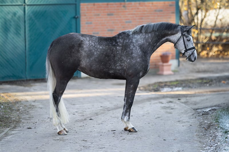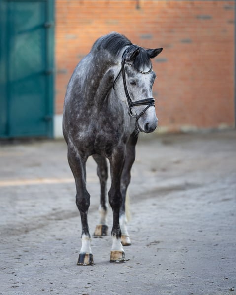 Zum Verkauf steht diese außergewöhnliche und bildhübsche Trakehner-Schimmelstute, abstammend von Best Before Midnight x Hirtentanz. Geboren 2020 und mit einem derzeitigen Stockmaß von ca. 173–174 cm, besticht sie nicht nur durch ihre Erscheinung, sondern auch durch ihr äußerst charmantes Interieur, ihre Kopfklarheit und ihren artig-lieben Charakter. Im täglichen Umgang ist sie ausgesprochen brav, menschenbezogen und unkompliziert – ein Pferd, das man sofort ins Herz schließt. Sie zeigt sich stets gelassen und gut erzogen. Auch unter dem Sattel überzeugt sie in jeder Hinsicht. Sie zeigt sich im Training zuverlässig, nervenstark und ohne Unarten. Sie kennt das Reiten in der Halle, auf dem Außenplatz sowie im Gelände und präsentiert sich dabei stets motiviert und sicher. Als Jungpferd wurde sie vielseitig gefördert und ist bereits in Geländepferdeprüfungen platziert. Zudem ist sie in Springpferde- und Dressurpferdeprüfungen gestartet. Zudem stammen Geschwister aus demselben leistungsstarken Mutterstamm und sind erfolgreich im Vielseitigkeitssport sowie im Dressursport unterwegs, was ihr vielversprechendes Potenzial zusätzlich unterstreicht. Aktuell befindet sie sich in der weiteren Dressurausbildung und erlernt die Lektionen der Klasse L. Dank ihrer Rittigkeit und klaren Lernbereitschaft entwickelt sie sich täglich weiter. Sie besitzt das Potenzial für den Turniersport, eignet sich jedoch gleichermaßen ideal für Amateure oder sogar als Familienpferd, da sie sehr brav zu reiten ist und auch einem schwächeren oder unsicheren Reiter ein gutes, sicheres Gefühl vermittelt. Röntgenbilder liegen vor und können bei ernsthaftem Interesse gerne zugesendet werden. Für weitere Informationen stehe ich jederzeit telefonisch zur Verfügung.