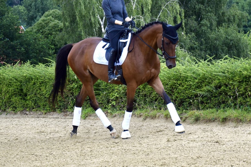 Donatella to urodzona w 2020 roku, obecnie ma około 165 cm wzrostu, brązowa klacz trakehnerska po Burma Gold xx x Cavallieri xx x Hohenstein. Jej pochodzenie oraz wszystkie rodzeństwo z tej linii sugerują wszechstronność. Donatella jest obecnie delikatnie i wszechstronnie szkolona. Szczególnie wyróżnia się jej chęć do pracy oraz predyspozycje do skoków. Już skacze kompletny parkur A, imponując odwagą, ostrożnością i orientacją, a także ma potencjał do wyższych zadań. Zdobyła również pierwsze doświadczenia w treningu terenowym i przy dalszym wsparciu nadaje się do wszechstronności. Również w pracy ujeżdżeniowej Donatella sprawia swojemu jeźdźcowi wiele radości. Zawsze jest zmotywowana, chce wszystko robić poprawnie i szybko się uczy. Żadne z lekcji ujeżdżeniowych L nie jest jej obce. Nigdy nie wykazała się oporem pod jeźdźcem i zawsze zapewnia mu poczucie bezpieczeństwa. Donatella uwielbia uwagę i zachwyca swoją przyjazną, ciekawską i nieustraszoną naturą. Aby się zrelaksować, regularnie wychodzi na jazdy w terenie, zarówno samodzielnie, jak i w grupie, we wszystkich chodach. Klacz trakehnerska jest przyzwyczajona do spędzania dnia w grupie na paddocku lub pastwisku. Pochodzi bezpośrednio od hodowcy, jest zaszczepiona, odrobaczona i regularnie odwiedza kowala. Dalsze informacje na życzenie, lokalizacja 42579.