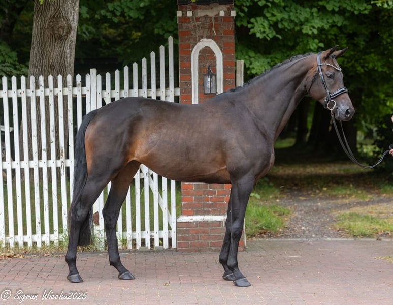 This striking daughter of the sire Interconti is a true eye-catcher that one cannot resist. She stands in a high-class, modern mare type and has been registered with 55 points during her Central Mare Registration, making her a premium candidate of the Trakehner Association. In addition to her unmistakable presence, this mare impresses with good, powerful basic gaits. Furthermore, the pedigree possesses a special athletic as well as breeding attractiveness. The mother of "Insa," who is a half-sister to the licensed stallion Iffland (by Tenor), produced among others the licensed later Vice Champion in eventing and now proven in international 4-star competitions, Ibsen (by Checkpoint). A special breeding offer that is for sale due to age-related cessation of breeding.