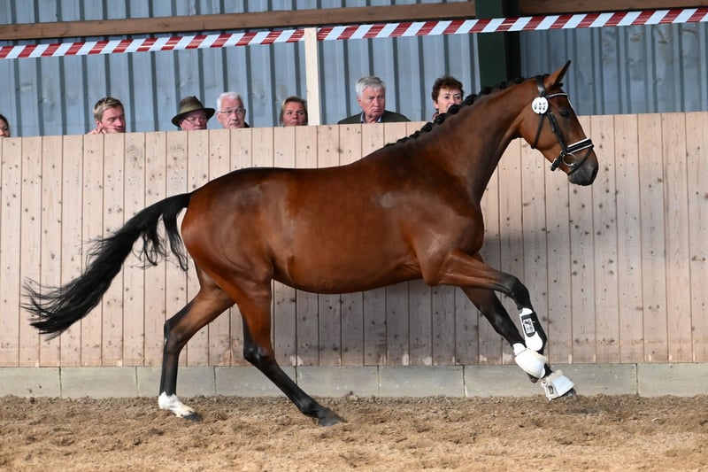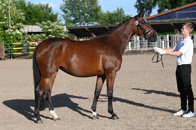 For sale is Amelie, one of the few mares from the Ann T9C family — her pedigree can be traced back seamlessly to 1782. This mare is undoubtedly a highlight for enthusiasts of Trakehner breeding, as she descends from the former trekking mare Ann. We are only reluctantly offering her for sale due to capacity constraints and our focus on Trakehner dressage breeding, but we would be delighted to find a caring home for this exceptional mare, ideally with Trakehner enthusiasts. Amelie's dam, Ambiente, was successful in dressage up to the M level and in eventing up to L. Her sire, Edmonton, was once the top show jumping stallion at the licensing and traces back to a full-blood line through Horalas and Abdullah. Following her mare performance test, which she completed with a score of 7.71 in Neustadt/Dosse, Amelie produced a colt by Tantalos. Unfortunately, she later suffered a pastern fracture (hoof), which was initially misdiagnosed and caused a lot of stress for both her and us. However, early this year, the injury was properly assessed and successfully treated at FU Pferdeklinik Berlin, so the sole is now fully healed and has regrown well. Amelie has good basic gaits, with her excellent walk standing out. But what is most remarkable is her temperament. Although she has only recently returned to riding, she demonstrates excellent rideability, a pleasant sensitivity, and provides the rider with a very good feeling. We could imagine her being used in breeding, perhaps with a focus on eventing, especially by enthusiasts who appreciate her pedigree. Alternatively, she could also serve as a reliable partner for a mother-daughter duo seeking a dependable, medium-sized leisure horse suitable for dressage, jumping, eventing, or trail riding. Since Amelie has not been extensively trained under saddle so far, such a path should definitely be guided by an experienced rider or trainer who can support her in learning new challenges. Amelie has a top character, but she is still relatively young and inexperienced. As with all our horses, Amelie will only be placed in good hands if we and the prospective buyers are confident that it is a good match. The price is negotiable in such cases, but we are starting from €10,000 (VAT included) in line with her quality.
