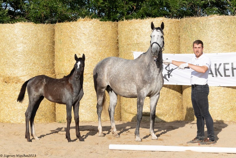 Ten koń jest częścią naszej kolekcji Select Sale 2024 i możesz zarejestrować się na tę aukcję już teraz. Licytacja rozpocznie się 05.01.2025 od godziny 19:00 (CET). Skopiuj link do aukcji i wklej go do przeglądarki: https://auction.sweetwater-stud.com/auctions Saxonietta to prospekt premium zarejestrowany z 54,5 punktami i wysokimi liniami krwi z absolutnym rodowodem outcrossowym. Jest blisko spokrewniona z odnoszącymi sukcesy końmi eventingowymi i ujeżdżeniowymi poprzez swoją matkę Sachsenkrone po Fiepes Winged xx. Sachsenkrone był niegdyś czempionem źrebiąt i najlepszym koniem aukcyjnym w Neumünster. Urodzony w 2022 roku, mocno ruszający się Sweetwaters Saxon po E.A. Sweetwaters Ziethen TSF, otrzymał 58,5 punktu przy rejestracji źrebiąt. Ma zostać zaprezentowany na wiosennej licencji 2025 w Münster-Handorf. Saxonija, również po E.A. Sweetwaters Ziethen TSF, źrebak premium z 58 punktami, został sprzedany w ręce wspierające za pośrednictwem aukcji internetowej Trakehner Verband w 2023 roku. Sachsenkrone jest również półsiostrą Sullivana, który uzyskał licencję w Neumünster w 2018 roku. Matka St.Pr.u.Pr. Sachsenkönigin jest pełną siostrą Sachsenköniga, który odnosił sukcesy na ringu ujeżdżeniowym do poziomu Grand Prix pod Katrin Bettenworth i może pochwalić się LGS w wysokości 23 444 €, oraz Sachsenglanza, który również odniósł sukces do poziomu Dr Kl S. Jej przyrodnia siostra St.Pr.u.Pr. Samanta III po Inkognito jest matką ogiera Sambucca po Handryk, który odniósł sukces do poziomu CICO3* pod Josephine Schnaufer, oraz ogiera Sachsenwald po Handryk, który uzyskał licencję NMS w 2002 roku. Samanta III jest również prawnuczką San Diego po Heops, który odniósł sukces do CCI3* w Szwajcarii. Odnoszący sukcesy w CIC2* Skambrack TSF po Buddenbrock również pochodzi z bezpośredniego pokrewieństwa matek. Jego ojciec Nuntius xx jest przyrodnim bratem legendarnego NOVELLIST xx. Jako zwycięzca King George VI and Queen Elizabeth Stakes w 2013 roku, syn Monsun xx odniósł jedno z najważniejszych zwycięstw niemieckich koni za granicą. Novellist został sprzedany japońskiemu Shadai Corp. Ltd. w 2013 roku za dwucyfrową kwotę. Galopujący koń roku 2013 w całym swoim życiu zarobił 1 443 632 euro. Wygrał dziewięć z jedenastu gonitw i pozostał niepokonany w 2013 roku! Sam Nuntius xx zaliczył 6 startów, w których odniósł 3 zwycięstwa i zajął 2 miejsca przy najwyższej wadze 93 kg. Jego ojcem jest ogier Aga Khan i najlepszy reproduktor Dalakhani xx. Linia ogierów, która ma pięciu zwycięzców międzynarodowych derbów tylko w pierwszych pięciu pokoleniach. Potomstwo Nuntiusa xx jest jezdne, jasne i wyposażone w dobre podstawowe chody, a także wykazuje talent do skoków. Saxonietta jest po E.A. Sweetwaters Ziethen TSF (ostatnia data hodowli 18.05.2024), wielokrotnym mistrzu świata 7-letnich koni wyścigowych w Le Lion d`Angers 2020, który wygrał do CCI3 * L. Elitarny kandydat SWEETWATERS ZIETHEN TSF, który ponownie prowadzi w tabeli TV "Sportsterne für Trakehner Hengste", tym razem 11-15 lat. Jest ojcem Bellezigane (patrz wyżej), który jest zarejestrowany jako kandydat do premii w 2023 roku, oraz SWEETWATERS OHLALA, który odnosi pierwsze sukcesy pod swoją australijską właścicielką, Natashą Moody. Oba pochodzą z pierwszego zbioru 2019, który jest reprezentowany przez zaledwie kilka potomków - wyłącznie z naszego programu hodowlanego. Jego najstarsze potomstwo ma w tym roku zaledwie pięć lat. Sweetwaters Ziethen jest również ojcem kilku wysoko premiowanych źrebiąt, z których część trafiła już do dobrych hodowców poprzez aukcje organizowane przez Trakehner Verband i nasze własne aukcje internetowe. W latach 2023 i 2024 Sweetwaters Ziethen otrzymał również wiele zachęty we Francji od hodowców koni rasy Selle Francaise i angloarabskiej. Jest ojcem 36 potomków od kilku bardzo interesujących matek. W połowie września 2024 r. podczas Journees international de L'Anglo-Arabe 2024 w Pompadour zaprezentował Czempionkę Francji źrebiąt płci żeńskiej AA, Sekcja 3 z córką OCYALEE DOMERGUIE AA od Belhyosa Domerguie AA po Veloce de Favi AA - Iago V AA. Innym angloarabskim źrebakiem wysoko nagrodzonym na tej imprezie jest ONLY YOU DOMERGUIE AA od Bahira de Domerguie AA po L'Elu de Dun AA, matki reproduktora Söderhof I'll win Domerguie AA. Jego córka NOVELA FORCE AA po Reva Force AA od Quatar de Plape AA, pochodząca z jego pierwszego francuskiego potomstwa, zapewniła sobie jedno z czołowych miejsc w sekcji 3 klaczek angloarabskich w Pompadour w połowie września 2023 roku. Ocena ZB: 8,5/7,5/7,5/7,5/8,0/7,5/8,0/54,5 - kandydatka do premii ZL 1/1 Więcej informacji na naszej stronie: https://www.sweetwater-stud.com