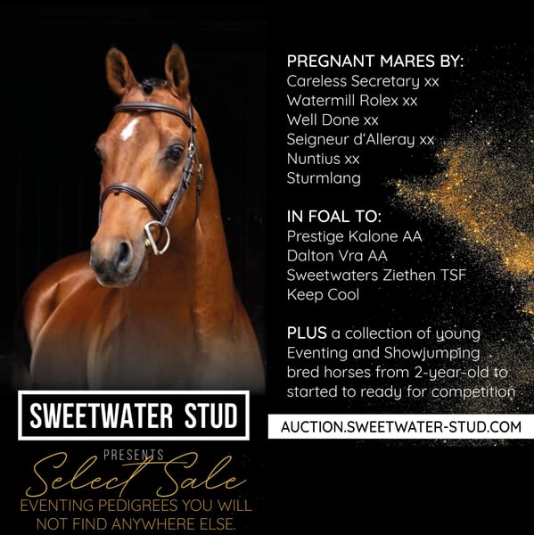 This horse is part of our Select Sale 2024 collection and you can register for this promotion now. The bid up starts on 05.01.2025 from 19:00 (CET). Copy the auction link and paste it into your browser: https://auction.sweetwater-stud.com/auctions Saxonietta is a premium prospect registered with 54.5 points and high bloodlines with an absolute outcross pedigree. She is closely related to successful eventing and dressage horses through her dam Sachsenkrone by Fiepes Winged xx. Sachsenkrone was once a championship foal and top auction horse in Neumünster. Born in 2022, the strong-moving Sweetwaters Saxon by E.A. Sweetwaters Ziethen TSF, received 58.5 points at foal registration. He is to be presented at the 2025 spring licensing in Münster-Handorf. Saxonija, also by E.A. Sweetwaters Ziethen TSF, a premium foal with 58 points, was sold to supporting hands via the Trakehner Verband's online auction in 2023. Sachsenkrone is also a half-sister to Sullivan, who was licensed in Neumünster in 2018. The dam St.Pr.u.Pr. Sachsenkönigin is a full sister to Sachsenkönig, who was successful in the dressage ring up to Grand Prix under Katrin Bettenworth and has an LGS of €23,444, and Sachsenglanz, who was also successful up to Dr Kl S. Her half-sister St.Pr.u.Pr. Samanta III by Inkognito is the dam of Sambucca by Handryk, who was successful up to CICO3* level under Josephine Schnaufer, and Sachsenwald by Handryk, who was licensed in NMS in 2002. Samanta III is also the great-granddam of San Diego by Heops, who was successful up to CCI3* in Switzerland. The CIC2* successful Skambrack TSF by Buddenbrock also comes from a direct maternal relationship. His sire Nuntius xx is a half-brother of the legendary NOVELLIST xx. As winner of the King George VI and Queen Elizabeth Stakes in 2013, the Monsun xx son achieved one of the most important victories for German horses abroad. Novellist was sold to the Japanese Shadai Corp Ltd. in 2013 for a sum in the double-digit millions. The 2013 galloper of the year has lifetime earnings of 1,443,632 euros. He won nine of his eleven races and remained unbeaten in 2013! Nuntius xx himself made 6 starts and achieved 3 wins and 2 places with a top GAG of 93 kg. His sire is the Aga Khan stallion and top sire Dalakhani xx. A stallion line that has five international Derby winners in the first five generations alone. Nuntius xx offspring are rideable, clear-headed and equipped with good basic gaits, while also showing talent at the jump. Saxonietta is by E.A. Sweetwaters Ziethen TSF (last breeding date 18.05.2024), the multiple world champion of 7-year-old eventing horses in Le Lion d`Angers 2020, who won up to CCI3*-L. Elite candidate SWEETWATERS ZIETHEN TSF, who again leads the table of the TV "Sportsterne für Trakehner Hengste", this time 11 - 15 yrs. His sires include Bellezigane (see above), who is registered as a premium candidate in 2023, and SWEETWATERS OHLALA, who is enjoying his first successes under his Australian owner, Natasha Moody. Both are from the first 2019 crop, which is represented by only a few offspring - exclusively from our breeding program. His oldest offspring are only five years old this year. Sweetwaters Ziethen is also the sire of several highly bonit premium foals, some of which have already found their way to good breeders via auctions organized by the Trakehner Verband and our own online auctions. In 2023 and 2024, Sweetwaters Ziethen also received a lot of encouragement in France from breeders of Selle Francaise and Anglo-Arabian horses. He is the sire of 36 offspring from some highly interesting dams. In mid-September 2024, he presented the Championess de France foals femelles AA, Section 3 with his daughter OCYALEE DOMERGUIE AA out of Belhyosa Domerguie AA by Veloce de Favi AA - Iago V AA at the Journees international de L'Anglo-Arabe 2024 in Pompadour. Another Anglo-Arabian foal highly rewarded at this event is ONLY YOU DOMERGUIE AA out of Bahira de Domerguie AA by L'Elu de Dun AA, the dam of the Söderhof sire I'll win Domerguie AA. From his first French crop, his daughter NOVELA FORCE AA by Reva Force AA by Quatar de Plape AA secured one of the top places in Section 3 of the Anglo-Arabian fillies at Pompadour in mid-September 2023. ZB evaluation: 8.5/7.5/7.5/7.5/8.0/7.5/8.0/54.5 - premium candidate ZL 1/1 Further information on our website: https://www.sweetwater-stud.com
