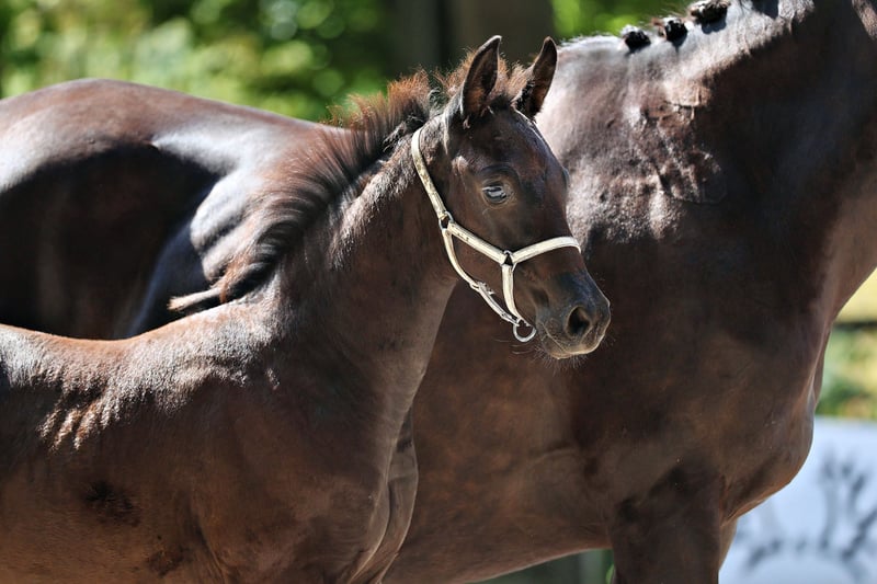 Mit dem Überguss des Besonderen verkörpert diese Schwarzgold-Tochter schon beim ersten Eindruck eine verzaubernde Aura, die untermalt wird mit allen Attributen der klassischen Trakehner Machart im modernen Gewand. Adel ergänzt sich mit Format, Schönheit mit Qualität und die äußere Erscheinung bestätigt das züchterische Glück der sehr gut durchdachten Konstellation des Pedigrees. Von den sieben Vererbern der ersten drei Generationen sind alle mit dem Elite - Titel geehrt worden und fünf waren bis zur Dressurklasse S und höher im Sport erfolgreich. Auf der Basis einer der erfolgreichsten Stutenfamilien der Gegenwart erscheint dieses im Typ so unverfälschte und bewegungsstarke Stutfohlen mit komfortablen Rahmen wie ein Geschenk für die züchterische und sportliche Zukunft.