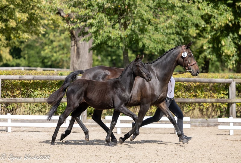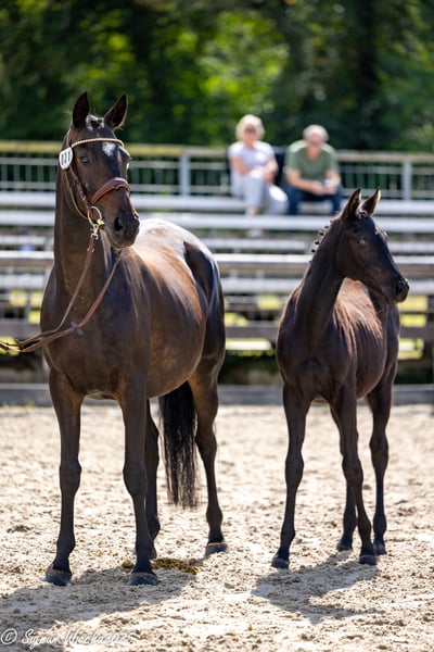 Der in die USA ausgewanderte und einer Überseekarriere im Huntersport zustrebende Grenoble hinterlässt hier eine Visitenkarte allerhöchster Güte. Dieses bezaubernde Stutfohlen zieht mit ihrem Charme, ihrem aufmerksamen Wesen und dem unverkennbaren Trakehner Rasse- und Geschlechtstyp jeden Betrachter sofort in ihren Bann. Als Championatsfohlen des Trakehner Zuchtbezirks Nordost weiß sich diese vornehme junge Dame stets taktsicher, leichtfüßig und tänzerisch zu bewegen. Ihr außergewöhnlich freundliches Wesen macht sie darüber hinaus zu einer Partnerin fürs Leben. Ein Fohlen, das man sowohl aus sportlichen als auch genetischen Gesichtspunkten, für die Zukunft sichern sollte!