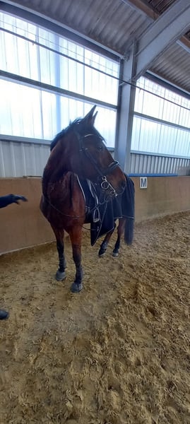 Unfortunately, due to changes in my life circumstances, I have to make a difficult decision. But I hope it will be in the best interest of the horse. He is simply not getting the attention he deserves from me and no longer has personal interaction... Brauni is a 24-year-old trotter who has been with us for 7 years. He has been ridden recreationally and goes out on trails alone, but one should be able to assert oneself from time to time. He does not buck or rear. He is eager to run but cannot gallop well. Due to his age, we decided not to teach him that anymore. Since then, he mainly stands in the pasture... As he is a thoroughbred, it should be noted that he can sometimes be a bundle of nerves, especially when his buddies are gone... At 24, he unfortunately does not have the best teeth anymore, but he has been regularly cared for. In winter, he gets sugar beet pulp and hay cubes with his meals, which he loves... I believe that one can still go out riding with him 2 to 3 times a week, but his age should be taken into account... I will only let him go if the new home is 100% suitable... A trial period would be an option before purchasing. Otherwise, he has generally never been sick and wears 4 shoes, which he will need going forward. If you have any questions, feel free to write... No dealers please.