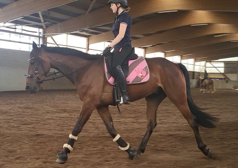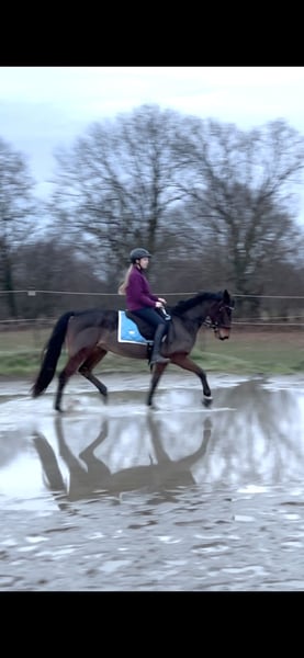 Zum Verkauf steht dieser 5 jährige Deutsche Traber geboren 16.02.2021. Barsoi „Barry“ ist 1,58m groß und eher schlank gebaut. Er ist sehr sehr lieb im Umgang und liebt Putzen und kuscheln. Er lässt sich auch problemlos von Kindern fertigmachen, führen etc. Er ist sehr stabil angeritten, aber noch kein richtiges E-Niveau. Er hat Spaß am „Springen“ (bislang bis ca 60cm). Er geht an der Longe sicher alle drei Grundgangarten und lässt sich an der Longe auch von Kindern super reiten. Unterm Reiter geht er sicher Schritt und Trab, Galopp ist vorhanden, allerdings noch eher schnellerer Natur, weil er noch unausbalanciert ist und nicht genügend Muskeln hat. Er ist beim „freien Reiten“ (ohne Longe) kein Anfängerpferd. Desweiteren ist er Geländesicher und kennt die Basics in der Bodenarbeit. Er ist ein sehr unerschrockenes Pferd (Trecker, rennende laute Kinder, Hunde usw kein Problem). Er ist auch mehrere Reiter gewohnt und kommt damit super klar. Er ist Barhufer und lieb bei TA, Schmied & co und ist Verladefromm. 4.000€ VB Bei Fragen und Interesse gerne melden!! Videos können auf Anfrage selbstverständlich über WhatsApp oÄ verschickt werden. Ein Probereiten ist nach Vereinbarung natürlich möglich.