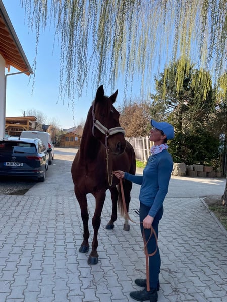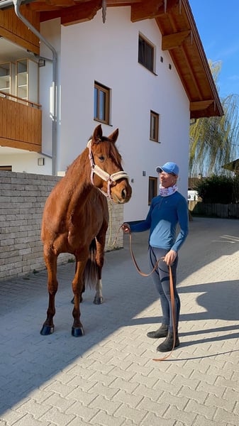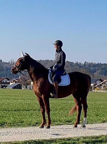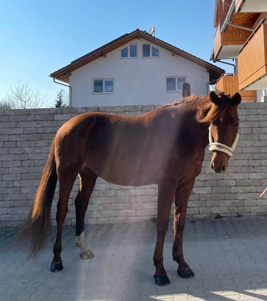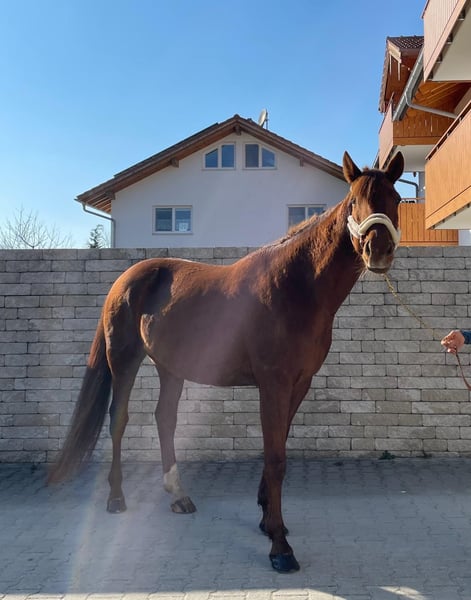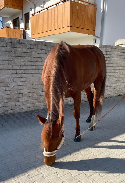 Wunderschöner Traber Fuchs Wallach mit sehr guten liebevollen Charakter sucht seinen Freizeitpartner, der gerne mit ihm fahren und reiten möchte. Lucador ist zurzeit viel im Gelände unterwegs, geht auch schon schön auf dem Viereck, muss aber noch gefördert werden. Kennt alle drei Grundgangarten. Im Gelände geht er alleine und in der Gruppe, er ist im Gelände sehr unerschrocken. Steht derzeit Tags auf der Koppel, nachts in der Box, kennt Offenstall aber auch. Wir suchen einen Partner für Lucador, der ihm weiterhin die Ausbildung bietet, das heißt kein Anfänger. Er ist ein wahrer Schatz, mit dem man durch dick und dünn gehen kann, weil er an allem großes Interesse zeigt. Lucador ist kerngesund. Ist aus dem Sport gegangen, weil er in Deutschland keine Rennen mehr hat. Ist auf allen vieren beschlagen, gechipt, geimpft und entwurmt. Keine Händler und Reitschulen. Fürs Probereiten werden 30€ verlangt.