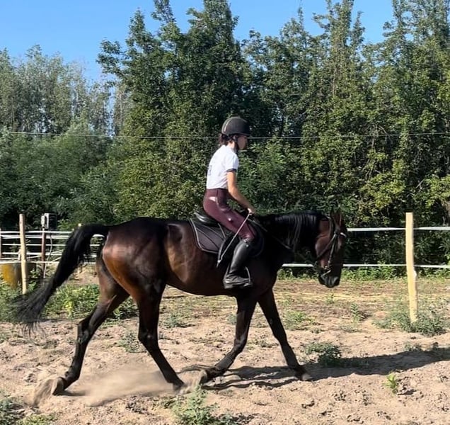 It is not easy for me, but due to time constraints and the need to reduce my stock, I must part with my soon-to-be 4-year-old mare. She is a German Trotting Horse and was born with me. She has no experience with trotting races or training, but she possesses the typical willingness to perform and endurance of the breed, combined with a clear, balanced temperament, and with her strength and speed, she could become an excellent sport horse. She also gallops normally and enjoys it; she is a horse close to my heart, gentle in nature, eager to learn, and wants to please. I wish for her to find a person who will truly pamper her, support her – preferably where she is the center of attention as an only child 🥰💓 She has been gently started under saddle, walks bravely in walk and trot – we have not yet worked on the gallop under the rider, as I simply lack the time to ride her regularly. She responds reliably to voice commands on the lunge and walks calmly on trails, eagerly loads onto trailers and large transporters. With her energy and joy for work, she would surely also be a great horse for disciplines such as eventing, jumping, dressage, or endurance riding. In the herd, she is low-ranking, so a small, harmonious open stable would be ideal. Only in the best hands ❣️ For further information, feel free to send a private message. WhatsApp +49 176 43561255