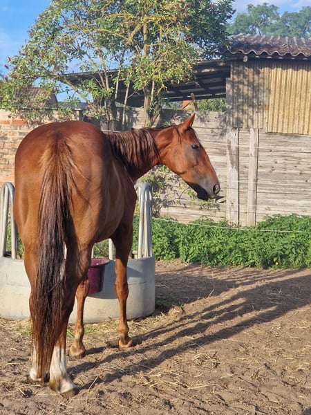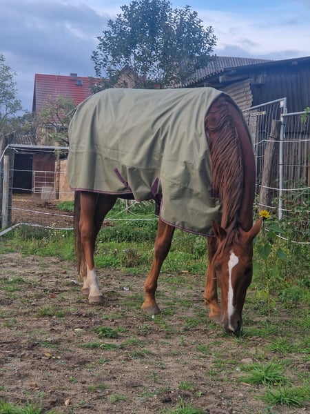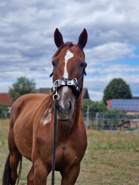 Hallo, suche für meine schöne Traber Stute Hope ein neues Zuhause. Sie ist 8 Jahre alt, 164cm groß und hat einen Charakter aus Gold. Sie ist ranghoch was auch leider der Grund für die Abgabe ist. Da sie mit meiner ersten Stute (halbseitig blind) zu zweit im Paddock steht. Bei der Arbeit braucht sie eine liebevolle, konsequente Hand, zeigt sich aber auch sehr lernbereit, aufgeschlossen und konzentriert. Sie wird aktuell geritten und durch regelmäßige Bodenarbeit und longieren gefördert. Zuletzt hat sie die Freiarbeit kennengelernt (noch nicht so gefestigt). Ich gebe sie als Freizeit- / Familienpferd ab, da sie auch sehr menschenbezogen und verkuschelt ist. Sie ist schmiede-, verladefromm und zeigt sich beim Tierarzt auch brav. Sie ist kerngesund, hat die erste Impfung schon und ist entwurmt. Folgendes Zubehör ist schon im Preis enthalten: - 2x Halfter - 1x Halfter- Kappzaum - 1x Fesselkopfgamaschen - 1x Hufglocken - 1x Regendecke - 1x Outdor-Decke 50g - 1x Fliegendecke - 1x Fliegenmaske - 1x Fliegenhaube Ich bitte nur um ernsthafte Anfragen.