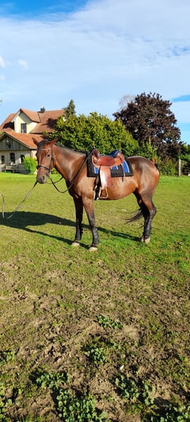 **For Sale: German Trotter Mare** Available is a beautiful dark bay mare of the German Trotter breed. She was foaled in 2017 and measures 16.1 hands. - Well-bred and ridden, needs some reconditioning - No history of eczema - Familiar with terrain and shows calmness in handling