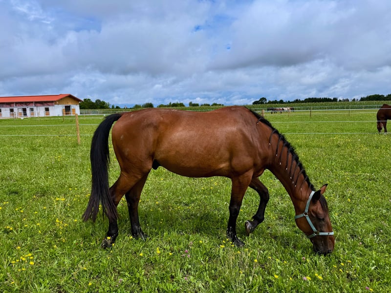 KORREKTURPFERD! Wir suchen ein neues, erfahrenes Zuhause für unseren 13-jährigen französischen Traber „Sparrow“. Sparrow ist ein echtes Powerpaket – charakterstark, intelligent und neugierig. Er braucht einen erfahrenen Pferdemenschen, der ihm Sicherheit gibt, ihn konsequent, aber fair führt und ohne Druck mit ihm arbeitet. Da er reiterlich noch nicht vollständig ausgebildet ist, sollte er von Grund auf neu gearbeitet werden. Deshalb geben wir ihn ausschließlich in erfahrene Hände ab. Uns selbst fehlt leider die nötige Erfahrung für diese Aufgabe. Im Umgang ist Sparrow sehr lieb und genießt die Nähe von Kindern – aber reiterlich ist er kein Kinderpferd! Gesund, schmiede- und verladefromm. Aktuell steht er in Boxenhaltung mit täglichem Auslauf auf Koppel und Paddock. Beim Vorbesitzer lebte er im Offenstall, braucht dort jedoch ausreichend Platz. Wir suchen jemanden, der Freude an der Arbeit mit einem sensiblen, charakterstarken Pferd hat und ihm die nötige Zeit und Ausbildung geben kann. Sparrow bringt einiges an Zubehör mit: alle Decken, Trense, Halfter usw.. (Keinen Sattel!) Gerne per Whatspp kontaktieren: 01731600468 Bitte ausschließlich Erstkontakt über WhatsApp bin den ganzen Tag mit Kindern und/oder Pferd beschäftigt und nicht ständig am Handy ☺️ 📍 Standort: 82031 💰 Preis: 3.000 VB – bei dem richtigen Menschen ist der Preis zweitrangig.
