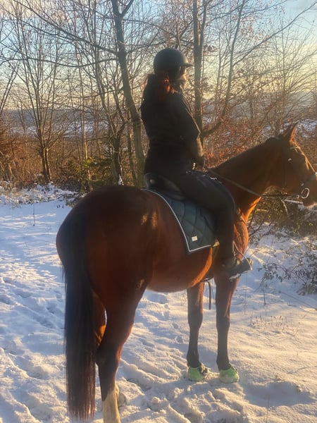 Higgins ist ein freundlicher, charmanter Wallach, der mit seinem sanften Wesen sofort überzeugt. Als ehemaliges französisches Trabrennpferd wurde er behutsam umgestellt und zeigt sich sowohl im Umgang als auch unter dem Sattel sehr brav. Er ist ein echtes Freizeitpferd und Umsteigerpferd, motiviert, lernfreudig und gut für Bodenarbeit geeignet. Schritt und Trab sind bereits gut ausgebildet; am Galopp arbeiten wir noch. Er braucht hier etwas Geduld, zeigt aber stetige Fortschritte. Higgins ist sozial verträglich, gesund, schmiede- und verladefromm. Er sucht erfahrene, einfühlsame Reiter, die Freude daran haben, ihn weiter auszubilden und ihm Sicherheit geben.