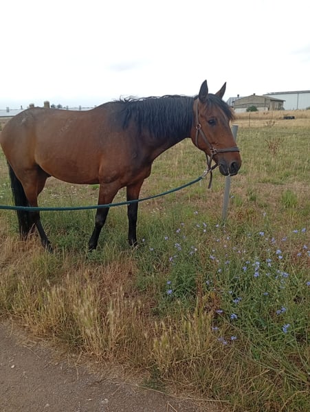 For sale is a handsome French Trotter gelding, born in 2018. With his attractive bay coat and a height of 16.1 hh, he presents as an elegant and well-proportioned leisure horse. The gelding is confident and reliable in handling. His calm demeanor makes him an ideal companion for leisure riders who value a balanced and pleasant horse. He consistently shows friendliness and composure both in the terrain and during handling. He has received solid training. Unfortunately, early-stage osteoarthritis has been diagnosed in his cervical spine. Therefore, he is offered at a reduced price. He remains suitable for relaxed rides or walks. His pleasant nature and character make him a loyal partner. I could imagine him being suitable as a therapy horse, as he is very gentle and friendly with children. If interested, we look forward to hearing from you to discuss further details and arrange a trial ride.