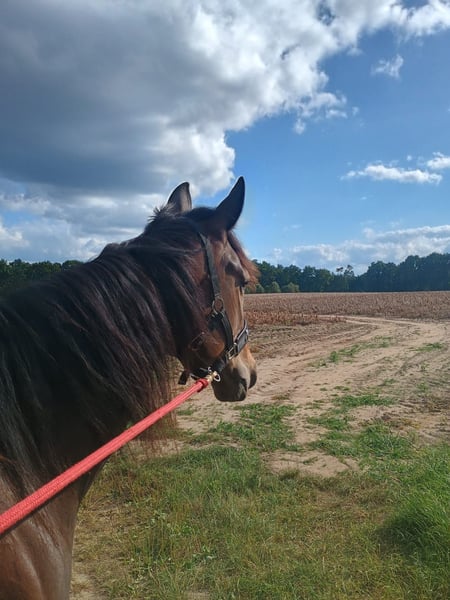 Geboren: 05/2021 Stockmaß: ca. 1,58 m Rasse: Traber Geschlecht: Stute, barhuf Menschenbezogene, charakterstarke 4-jährige Traberstute zu verkaufen. Leicht angeritten, aktuell überwiegend Bodenarbeit (Geitner, Longe, Folgearbeit) – motiviert und lernwillig. Kennt Spaziergänge allein und in der Gruppe. Gute Grundgangarten, Galopp problemlos, zeigt Potential am Sprung. Im Umgang brav, reagiert fein auf Stimme, unkompliziert bei Hufbearbeitung und Gelassenheitstraining. Kein Anfängerpferd – braucht eine feste Bezugsperson und kompetente Führung. Haltung aktuell: nachts Box, tagsüber Paddock, im Sommer gerne Weidegang. Gesund, AKU (04/2025) ohne Befund. Videos bei ernsthaftem Interesse. Platz vor Preis, Zubehör vorhanden. Nur in beste Hände.