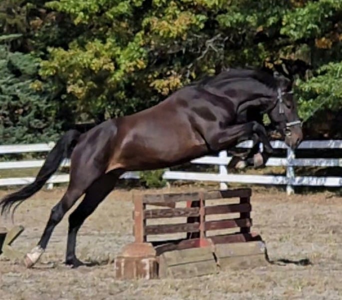 "AVAILABLE ON ONLINE HORSE AUCTION AT www DOT MagicHorseAuction DOT com BIDDING OPEN NOW thru TUESDAY | MARCH 31st! BUY IT NOW AVAILABLE! *Final price will be determined on auction site* CONSIGNOR CONTACT INFO: Hannah Zorn #917-821-4140 LOCATION:917-821-4140" "Coming 6 year old registered DHH gelding, eligible for KWPN registry, standing 16.2hh. Black Tie is an exciting young event prospect with the talent, scope, and foundation to continue moving up the levels. He has shown in cross country, show jumping, and dressage, consistently placing in the ribbons. He has successfully BN eventing, while schooling novice and training and has been brought along slowly and correctly, ensuring he has the confidence and solid foundation needed for a long career. He's competed up to 2'9 jumpers and schooled up to 3’3”. Black Tie is brave on cross country, careful over fences, and balanced on the flat. He shows excellent natural scope, comfortably free jumping 4’3” with room to spare. He's also broke to drive, trail rides well, and learns tricks and games fast making him a fun companion in all aspects. With his exuberance, trainability, and presence, Black Tie is an exciting prospect for a competitive eventing or sport horse program or ambitious amateur looking for their next partner. Up to date on vet, farrier, and dental. Full length videos, many more photos, and video call available. PPE is welcomed at buyer's expense. Best suited for an experienced rider/handler who will continue his development in a consistent program. "