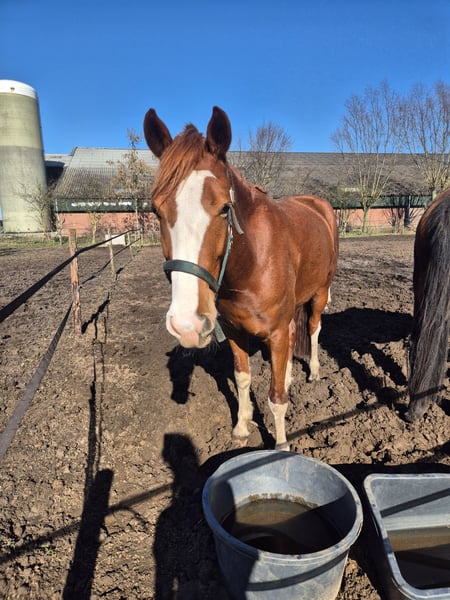 Lieve 4 jarige tuigermerrie v. Macho Zadelmak, wordt momenteel doorgereden en verkeersmak gemaakt. Bekend met grond- en loswerken, wordt op die manier ook met rust en ontspanning beleerd. Braaf bij dierenarts, trailerladen, aan de hand etc. Sita is ook niet terughoudend op een hindernis en laat een leuke sprong zien. Voor meer info en video's: Info@rijntjesdegraaf.nl Senni: 06 48646818 Tirza: 06 54940181