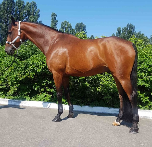 Solomon 8 years old gelding Tall 176cm TÜV-48 pictures, totally healthy. He was born in the Ukraine and is registered as a Ukrainian warmblood, he has the Donerhall line on both his mother's and father's side, he is inbred. Great character. Perfectly trained elements. Goes well in the paddock. Iron and veterinary treatments without problems. Neutral towards other horses. Very tidy and never gets dirty. :)