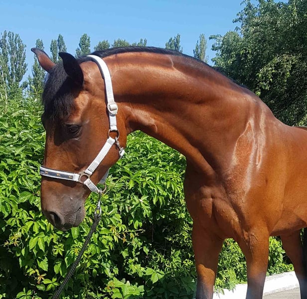 8 Jahre alt Wallach Große 176cm Die Röntgenaufnahmen vom ganzen Körper sind vorhanden,total gesund. Er wurde in der Ukraine geboren und ist als ukrainisches Warmblut eingetragen.Er hat die Linie Donerhall sowohl mütterlicher- als auch väterlicherseits, er ist inbrüdet. Toller Charakter. Perfekt ausgebildete Elemente . Geht gut auf die Koppel/Paddocks. Eisen und veterinärmedizinische Behandlungen ohne Probleme. Neutral gegenüber anderen Pferden. Sehr ordentlich und wird nie schmutzig. :) Wir können bei der Lieferung helfen.