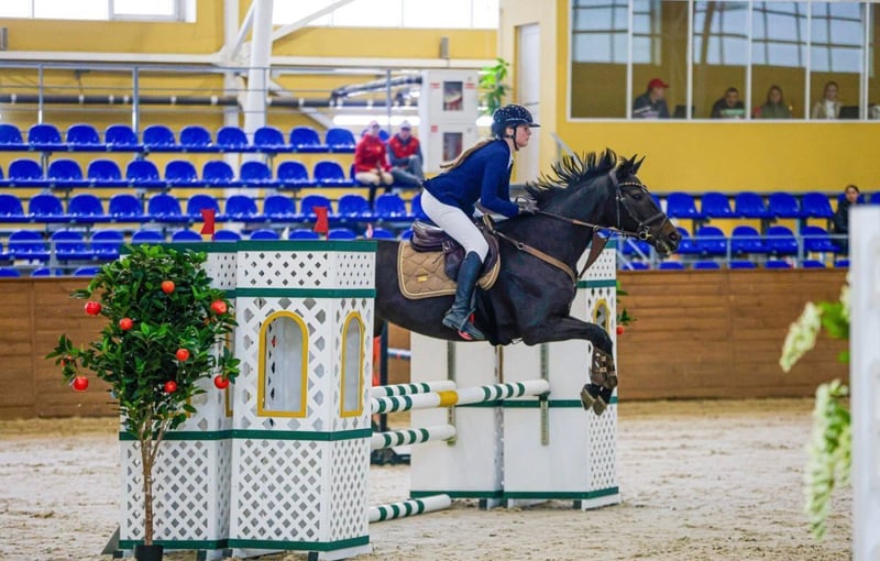 Stute, Ukrainisches Reitpferd, geboren 2017, 162 cm Stockmaß. Springen: Turniererfahrung bis 100 cm (mit Kind als Reiter), Training zuhause bis 115 cm, Freispringen bis 145 cm. Dressur: Einstiegsklasse (ähnlich A*) mit 69,750%. Geeignet für ein sicheres Kind. Lässt alle notwendigen Handlungen problemlos über sich ergehen. Gesundheitszustand: Gesund. Alle Untersuchungen auf Kosten des Käufers. Dokumente: Russischer Sportpass (FKSR), Zuchtpass, Kaufvertrag. Preis: 700.000 RUB. Standort: Stadt Kursk