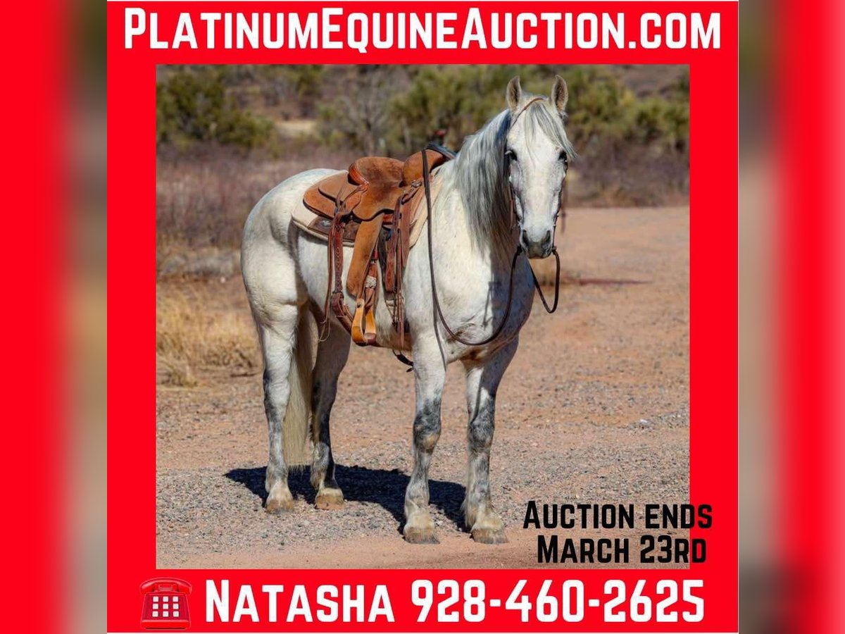 ONLINE AUCTION Place your bids at www.PlatinumEquineAuction.com Starting Bid $3500 Auction ends March 23rd, 2025 Need a new saddle? Check out White Rock Saddles on our website or Facebook! Gandalf is a 10 year old grade warlander gelding standing 15.1hh. This magnificent gelding is just as gentle as he is gorgeous!!! Embark on your next adventure down the trail or lope flawless circles in the arena, you name it and Gandalf will do it, taking great care of you along the way!! Cruise on down the busy streets of town, meander down the trail, weave through the brush, climb through the rocky rough country, cross flowing waters. Gandalf will go absolutely any direction you point him without batting an eye, surefooted as can be with absolutely zero spook!! This handsome gelding is not only an amazing trail partner, he’s just as fun in the arena!! Gandalf will walk, trot and lope both ways with ease, as well as neck rein, sidepass and has a great stop! Gandalf would truly excel in absolutely any direction you decide to take him! Gandalf is easy to catch and good to groom, saddle, bridle, bathe, shoe and load!! Will come with a clean coggins and health! Transport can easily be arranged anywhere in the US!! Located in Camp Verde, AZ. D/C Equine Services Dallas 804-822-2233 or Natasha 928-460-2625. ONLINE AUCTION Place your bids at www.PlatinumEquineAuction.com Starting Bid $3500 Auction ends March 23rd, 2025 Need a new saddle? Check out White Rock Saddles on our website or Facebook!