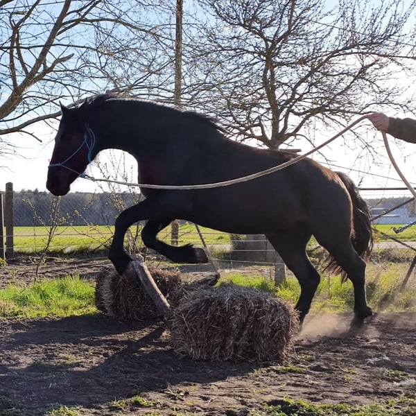 Wir geben unseren 3jähr Warlander in geeignete Hände ab. Weisst du, wie man sensible , temperamentvolle und intelligente Pferde arbeitet und fördert? Weisst du, wie sehr sie sich auf einen einzigen Menschen einschießen und diesem mot ganzen Vertrauen begegnen? Weisst du, wie sich die große Menschenbezogenheit und die einmalige Eleganz und Schönheit, die Sieges Pferd mit sich bringen, anfühlen? Wenn du diese Attribute schätzt, dich selbst reflektieren kannst und weisst, wie man solche Pferde korrekt ausbilden kann für s Leben, dann könnte Viento zu dir passen. Schon als Fohlen wurde seine Qualität mit der Goldmedaille anerkannt und er konnte voll überzeugen, und auch heute ist diese Qualität in seinen Genen verankert. Er ist ein absolutes Traumpferd, welches schon vom Boden gearbeitet wird in Form von horsemanship, Seitwärts gehen kann und auch den spanischen Schritt schon beherrscht. Spielerisch trug er einen Sattel und auch einen kleinen Reiter. Zudem ist er in Schritt und Trab bereits anlongiert und an der Hand angesprungen. Er ist also bestens vorbereitet auf sein zukünftiges Leben als Reitpferd. Nun fehlt ihm noch der passende Reiter für seinen weiteren Lebensweg Es gilt bei ihm Platz vor Preis
