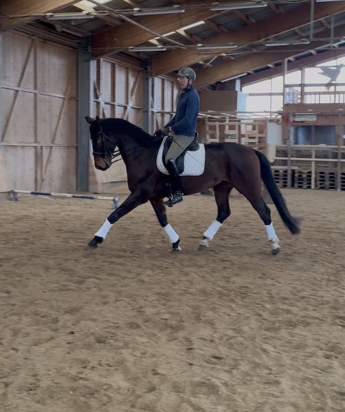 'Four Seasons', or 'Viero' as we call him, is a 10-year-old Austrian Warmblood gelding, approximately 172 cm at the withers, dark bay in color, sired by Vivaldi out of a Davignon II mare. Viero is a very well-behaved, affectionate gelding who loves cuddles and is completely herd-safe. In the field, he is very calm and well-behaved, both when hacking out and during walks. He is not spooky in the terrain, is familiar with road traffic, tractors, dogs, etc. He has three very good gaits. Under saddle, he is motivated, eager to learn, and has a solid basic attitude. He requires a rider who can provide him with security, as he is quite sensitive. In stressful situations, he can become quick-tempered, so a confident rider is necessary. However, he does not rear or buck! Therefore, suitable mainly for brave riders. In dressage, he is working at a solid M level, with S-level movements (such as flying changes) currently being developed. He is ridden several times a week. He is completely shoe- and loading-safe (regularly taken to external training sessions). He has not yet been shown at competitions, but this is planned for 2026. An older veterinary certificate is available without any findings. He is regularly vaccinated and dewormed. Price negotiable. Please contact us by phone at: +43 676 6419041 Videos and more photos gladly available via private message. Test rides possible at any time. Location: Upper Austria, Ried im Innkreis district.
