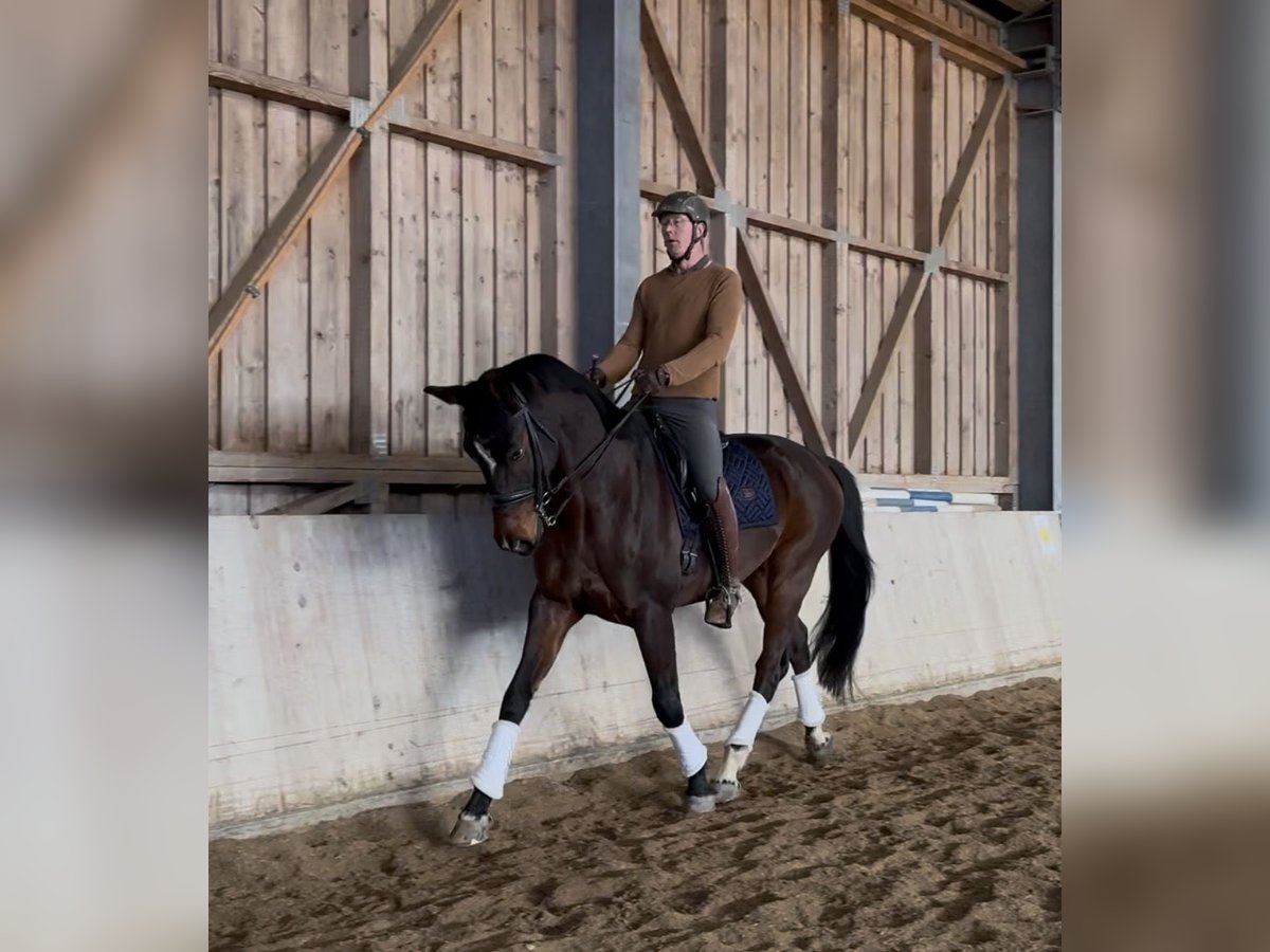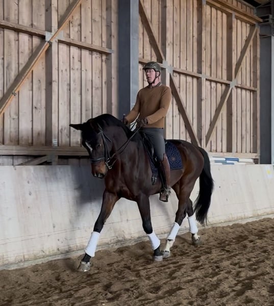'Four Seasons', or 'Viero' as we call him, is a 10-year-old Austrian Warmblood gelding, approximately 172 cm at the withers, dark bay in color, sired by Vivaldi out of a Davignon II mare. Viero is a very well-behaved, affectionate gelding who loves cuddles and is completely herd-safe. In the field, he is very calm and well-behaved, both when hacking out and during walks. He is not spooky in the terrain, is familiar with road traffic, tractors, dogs, etc. He has three very good gaits. Under saddle, he is motivated, eager to learn, and has a solid basic attitude. He requires a rider who can provide him with security, as he is quite sensitive. In stressful situations, he can become quick-tempered, so a confident rider is necessary. However, he does not rear or buck! Therefore, suitable mainly for brave riders. In dressage, he is working at a solid M level, with S-level movements (such as flying changes) currently being developed. He is ridden several times a week. He is completely shoe- and loading-safe (regularly taken to external training sessions). He has not yet been shown at competitions, but this is planned for 2026. An older veterinary certificate is available without any findings. He is regularly vaccinated and dewormed. Price negotiable. Please contact us by phone at: +43 676 6419041 Videos and more photos gladly available via private message. Test rides possible at any time. Location: Upper Austria, Ried im Innkreis district.