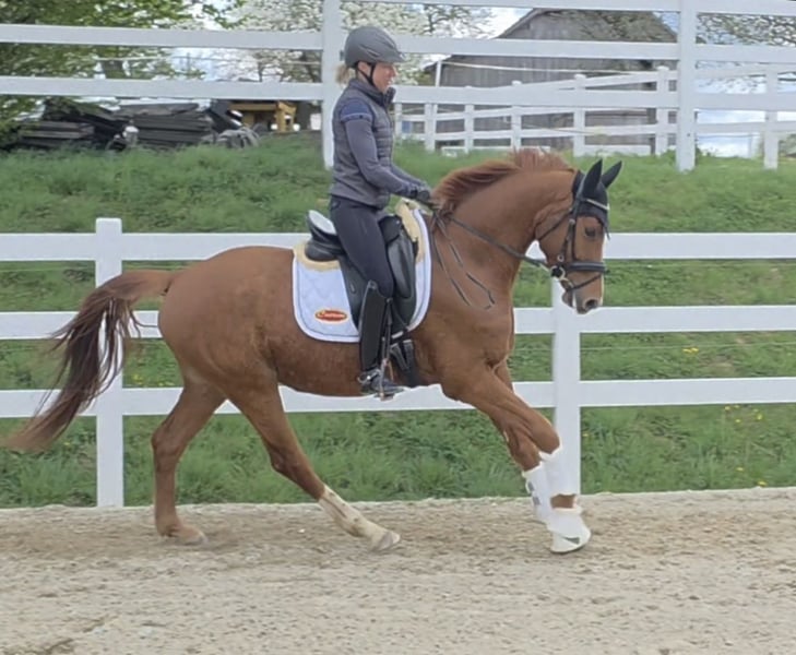 Top Gun is a very rideable son of Toto Gold (Totilas) and has been under saddle for five months. He will likely grow a few more centimeters. He comes from one of Germany’s top mare lines (Weissena, including Weihegold...). Recent good X-ray examination.