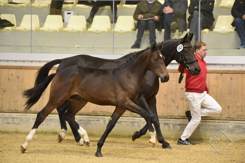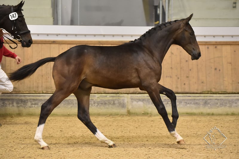 Beautiful Dancer is a stallion yearling by Baildor who was trained by Hubertus Schmidt and is now on his way to dressage. On the mother side you will find thunder reverberation and rough diamond. Beautiful Dancer was a participant in the foal championship at Birkhof Stud and a finalist at the Austrian Federal Championships. His agility and character speak for themselves. He enjoys his youth in a stallion breeding, which can also be taken over. Videos of the foal championships can be found on clipmyhorse.