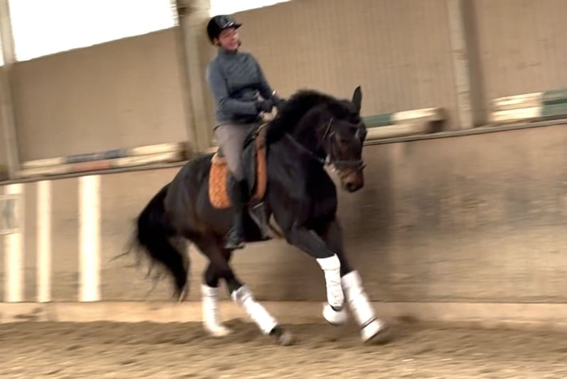 Beautiful ÖWB gelding truly lives up to his name as a charming little cavalier! He is currently 4 years old and consistently shines and gleams with enthusiasm in every task he is given. He has already achieved placements in show jumping, enjoys hacking out alone or in a group, and his true strength lies in dressage. Thanks to his exceptional correct conformation, he demonstrates three excellent basic gaits that are soft to sit and achieved completely without tension. He has always been handled with one hand, has never experienced any negative incidents, has never been ill, and was health-checked before starting his training in December of last year. He is currently located in Vienna’s Prater and can be viewed at any time by appointment.