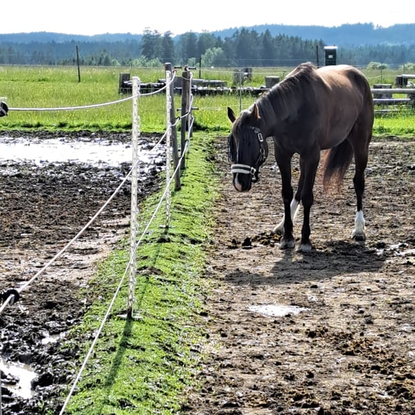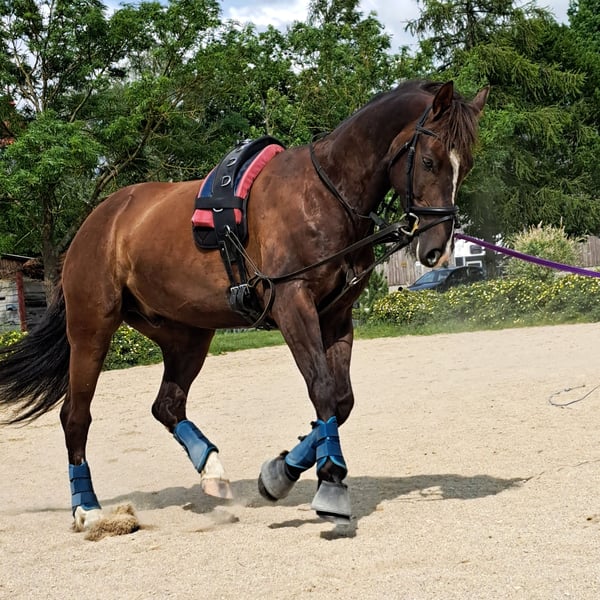 Splendido castrone con un manto speciale di colore Kohlfuchs, con movimenti molto eleganti, facile da cavalcare. Si distingue per il suo carattere tranquillo e sereno, desideroso di compiacere, molto apprendente, amichevole con i bambini e ama coccolarsi durante le pulizie e il messa in sella. Quest'anno ha superato con successo le sue prime gare. È un vero tesoro. Purtroppo dobbiamo separarcene perché, a causa di una diagnosi improvvisa di COPD, non può più restare in box con noi. Ha bisogno di vivere in paddock e di poter uscire liberamente in qualsiasi momento, motivo per cui viene venduto a un prezzo molto inferiore al suo valore reale. Cerchiamo per lui una famiglia affettuosa.