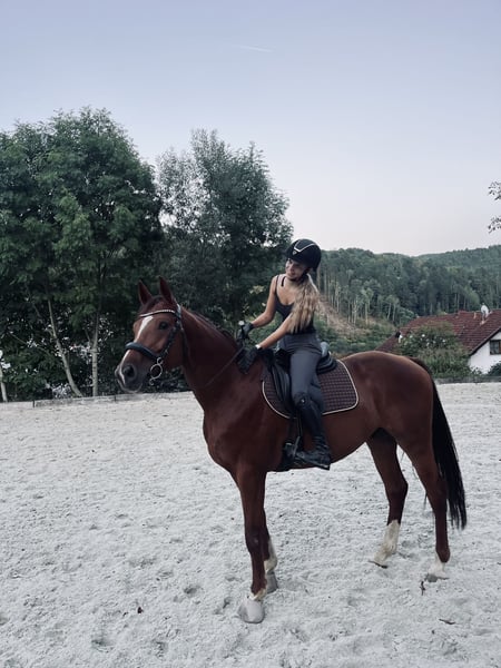 Austrian Warmblood (Gelding) For sale is a beautiful Austrian Warmblood gelding, born in 2018. With his striking chestnut coat and a height of 173 cm, he is a real eye-catcher. This talented gelding is excellently suited for dressage as well as jumping and already shows promising potential; however, he has only been under saddle for one year, corresponding to his training level. He is well-mannered, well-educated, and has a pleasant temperament, making him an ideal partner for EXPERIENCED riders. Since he occasionally has small quirks, I will only sell him to GOOD and EXPERIENCED hands. He has been worked both in the field and in the arena and shows a high willingness to learn. If you are interested or need further information, please feel free to contact me. Viewings are possible by arrangement.