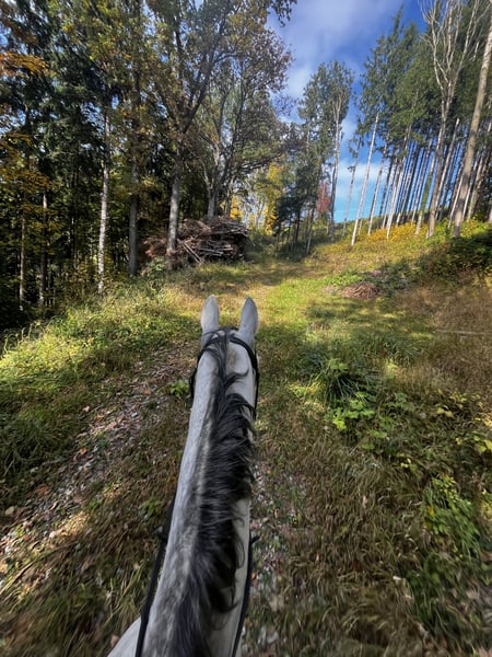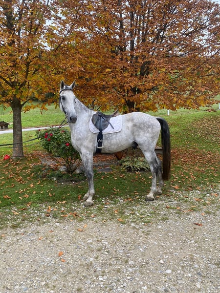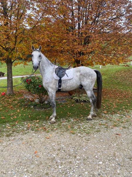 Charlie is an 8-year-old, approximately 1.72 m tall, very friendly Austrian warmblood gelding with excellent pedigree (sire: Caretto, dam: Donner Roulette). Even as a young horse, he made a great impression: he placed 3rd at the foal championship, participated in the federal championship, and impressed in the free jumping and material testing. His quality and talent have been evident since the beginning of his training. In handling, Charlie is always friendly, respectful, and reliable – even with children. He is clear-minded, shoe and trailer loading friendly. Charlie learns quickly, loves work, and impresses with lots of energy and a strong work ethic. Under saddle, he is sensitive to aids, soft in the mouth, and demonstrates impressive impulsion in all three basic gaits. His versatile talent makes him an ideal partner for dressage, jumping, eventing, or an ambitious leisure rider. Charlie has competition experience in jumping and dressage. He is perfect for young riders looking to grow with a talented horse, as well as for more experienced riders seeking a finely reined, performance-oriented sport partner. Highlights: - 8 years old, approx. 1.72 m - Directly from the breeder - Friendly & reliable, also with children - Clear-minded, brave - Shoe and trailer loading friendly - Sensitive in the mouth, easy to ride - Plenty of impulsion in all three basic gaits - Competition experience (jumping & dressage) - 3rd place at the foal championship - Participated in: federal championship, free jumping championship, material testing - Versatile talent – ideal for sport & leisure - Excellent pedigree: Caretto x Donner Roulette