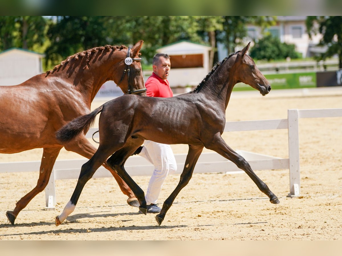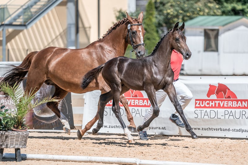 meraviglioso stallone in preparazione con giacca scura e straordinarie andature di base qualificato per il Bundeschampionat molto corretto con un bel muso assolutamente socievole conosce l'ABC dei puledri, il maniscalco, il trasportino, ecc. Per ulteriori dettagli, contattateci volentieri!