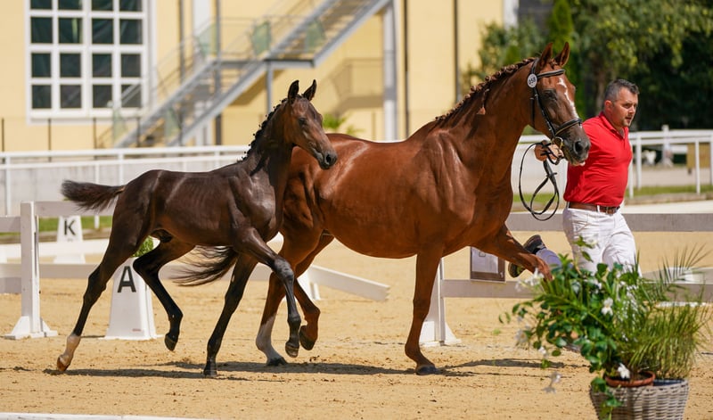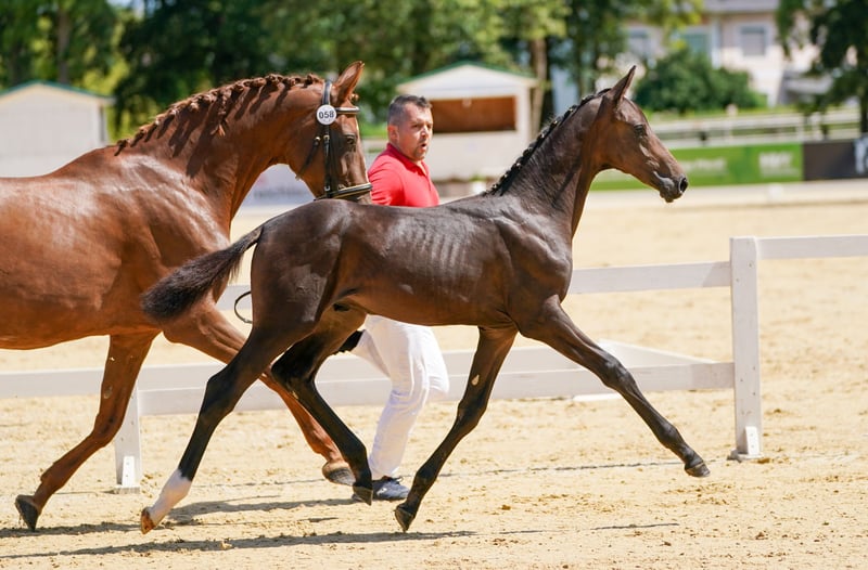 beautifully presented stallion prospect in a dark jacket with outstanding basic gaits qualified for the Bundeschampionat very correct with a great face absolutely sociable knows foal ABC, farrier, hanger etc. More details in person!