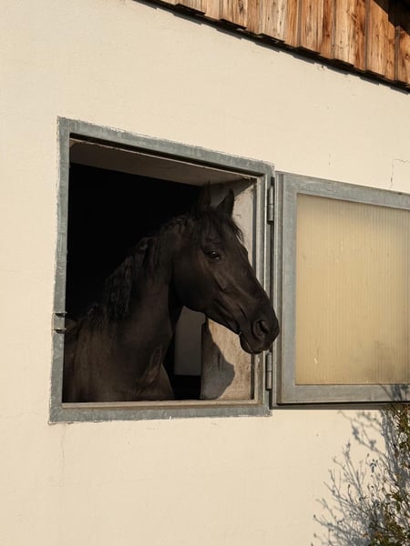 Zum Verkauf steht ein beeindruckender schwarzer Dressurhengst, 6 Jahre alt, mit hervorragender Ausstrahlung und vielversprechender Perspektive für den gehobenen Dressursport. Der Hengst ist bereits schonend angeritten und zeigt sich dabei stets lernwillig, aufmerksam und mit einer sehr guten Arbeitseinstellung. Er verfügt über drei ansprechende Grundgangarten mit viel Takt, Schwung und natürlicher Balance. Besonders hervorzuheben sind sein elastischer Bewegungsablauf sowie seine Präsenz unter dem Reiter. Aktuell befindet er sich aufgrund eines Wachstumsschubs in einer Reitpause, was ihm die nötige Zeit zur körperlichen Weiterentwicklung gibt. Diese Phase wurde bewusst eingeplant, um langfristig einen gesunden und leistungsbereiten Sportpartner aufzubauen. Er ist im Umgang brav, kennt die gängigen Abläufe im Stall und zeigt sich unkompliziert im täglichen Handling. Ein Pferd mit viel Qualität für Reiter, die sich ein Nachwuchstalent selbst weiter fördern möchten. Bei ernsthaftem Interesse freuen wir uns über Ihre Kontaktaufnahme unter 06763613118. Weitere Bilder folgen in Kürze.