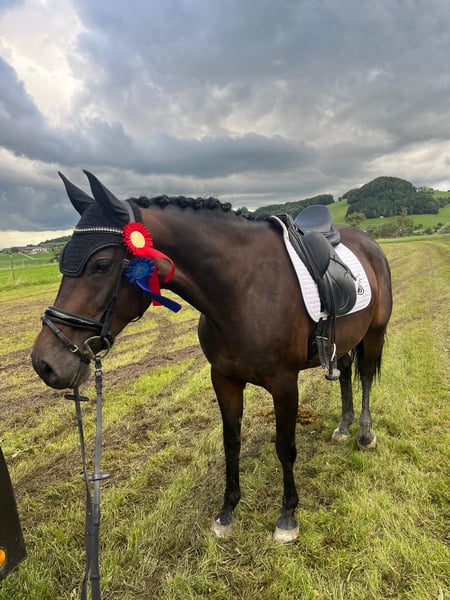 Alykessa ist eine sehr liebe, motivierte junge Stute die sich seht gerne im Viereck präsentiert, aber man kann auch im Wald und Gelände richtig Spaß mit ihr haben. Bei Turnieren zeigte sie sich bis zur Dressur-Klasse LM siegreich und ist auch auswärts immer ein richtiger Verlass. Ebenso hat sie auch Erfahrung in der Working Equitation, worin sie auch bei Turnieren schon vorgestellt wurde. Alykessa wird schweren Herzens, aufgrund von Zeitmangel, verkauft und wir wünschen ihr einen tollen neuen Platz für sie - aus diesem Grund auch Platz vor Preis! Sie kennt verschiedenste Stallarten, Box mit Koppelgang, Offenstall,.. für sie alles kein Problem, sie passt sich sehr schnell an. Bei Bedarf, gegen Aufpreis, mit komplettem Zubehör abzugeben.