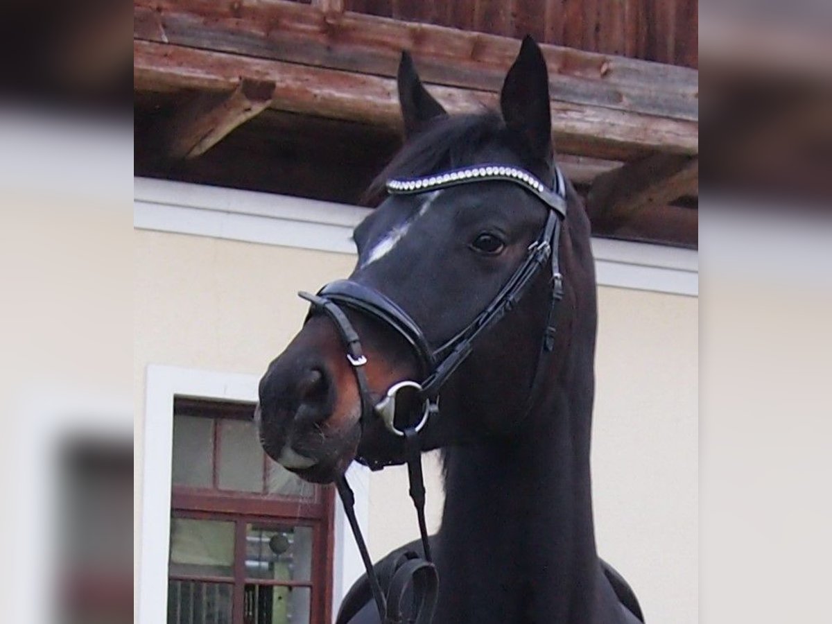 Zierliches/blütriges Pferd mit einem Stockmaß von 162 cm, Rappe, 4x weiß. Gesucht wird ein fürsorgliches Zuhause für eine freundliche, menschenbezogene sowie kinderliebe Stute aufgrund Aufgabe der Zucht und aus beruflichen Gründen. Als Jungpferd gut grundausgebildet (Dressur Kl. A/L), danach aufgrund Zuchteinsatz und Zeitmangel nicht weiter gefördert, aktuell ungeritten. Vorstellbar ist ein Einsatz in der Zucht oder als Freizeitpferd, aufgrund ihrer sensiblen Art auch Einsatz für Coachings oder Seminare möglich. Aktuell barhuf. Sie kennt Offenstall sowie Boxenhaltung alleine als auch in der Gruppe. Platz vor Preis.