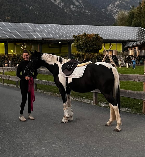 Sissi ist bis A** ausgebildet und springt zuverlässig Parcours. Auch Ausritte ins Gelände, sowohl alleine als auch in der Gruppe , genießt sie sehr. Trotz ihrer Größe von 148 cm überzeugt sie mit drei sehr schönen und ausdrucksstarken Grundgangarten. Mit ihrer freundlichen und ausgeglichenen Art lässt sie sich auch durch Reiterfehler nicht aus der Ruhe bringen. Dadurch eignet sie sich ebenfalls gut für jüngere oder noch etwas unerfahrenere Reiter:innen. Für Sissi wünsche ich mir ein liebevolles Zuhause, denn das hat sie mit ihrem zugewandten Wesen mehr als verdient. Platz vor Preis.
