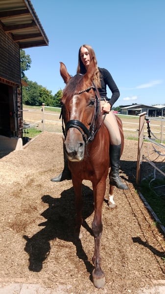 Österreichische Warmblut Stute Dunkelfuchs Queeny sucht ihren Menschen - jemand der Erfahrung mitbringt Meine Tochter 14 und Queeny finden nach 1,5 Jahren Arbeit nicht perfekt zusammen. Wir wünschen uns für sie einen routinierten Pferdemenschen. Sie will gefallen und täglich gearbeitet werden- da wir leider keinen Reitplatz haben - können wir ihr dies nicht bieten. Sie ist eingetragene Zuchtstute - hatte bis jetzt ein Fohlen - auf Grund ihrer tollen Dressur Abstammung auch für die Zucht interessant. Bei ernsthaftem Interesse gerne mehr!