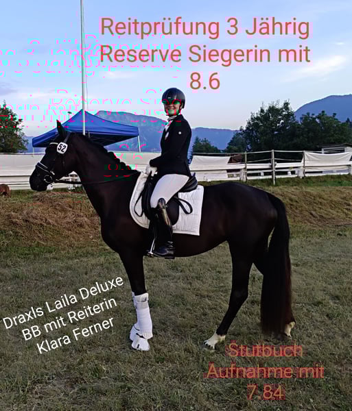 Nervenstarke, leichtrittige 4jährige Stute mit hervorragende GGA Reitpferdeprüfung 3 J. Res.Sieger mit 8.6 Reitpferdeprüfung 4 J. Siegerin mit 8.8 (Schritt 9,5 Galopp 9,0 Trapp 9,0) Bundeschampionat 4 J. 9te von 27 mit 8.0