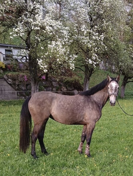 Valeska, wunderschöne 3j. Rotschimmelstute (Vingino x Ludwig Austria), im mittleren Rahmen (Stckm 1.61m), gute Grundgangarten mit genug Ausdruck und viel Talent am Sprung. Ein Rohdiamant mit über Generationen durchgezogenem feinsten Springblut. Ihr Talent und ihre Lernbereitschaft bieten eine sichere Grundlage für eine erfolgreiche Ausbildung als Springpferd.