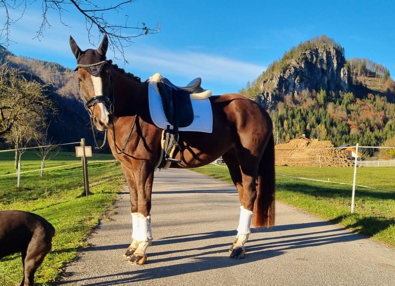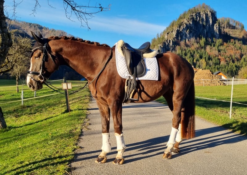 This 4-year-old mare impresses not only with her modern conformation and excellent movement but also with her honest, eager-to-learn character. She was gently backed in June and has been regularly and age-appropriately further educated since then. She consistently shows attentiveness, motivation, and a desire to please her rider. At the Upper Austria State Championships, she gained her first competition experience, presenting herself confidently, focused, and always attentive to her rider – a young mare with great potential for the future. This young mare offers ideal prerequisites for a successful sporting career but is also suitable for ambitious leisure riders who appreciate a talented and strong-willed partner. Due to her age and training level, she is not suitable for beginners; however, in the right hands, she is a genuine heart horse with promising prospects. 📋 Health: X-rays of her legs available (minor findings). 📍 Location: Upper Austria, near the border to Styria 💬 Place before price – more important than the sale is finding her a suitable home where she can continue to be supported and loved.