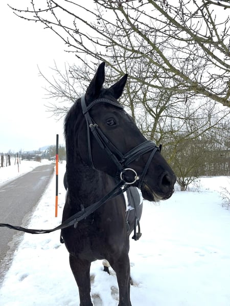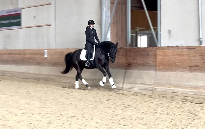 Zum Verkauf steht eine junge Rappstute mit Top-Abstammung, die durch ihre Schönheit bezaubert. Bereits beim Fohlenchampionat konnte sie sich mit einer Gesamtnote von 8,17 für das Bundeschampionat qualifizieren. Bei der Reitpferdeprüfung 3-Jährig erreichte sie eine Gesamtnote von 7,6. Sie hat auch außerhalb der Zuchtveranstaltungen bereits erste Turniererfahrung gesammelt und zeigte sich hier unerschrocken und bemüht. Die Stute schätzt abwechslungsreiches Programm und hat auch Freude beim Springen. Angesprochen werden erfahrene, sichere Reiter, welche das Potential des Pferdes weiter fördern möchten. Sie wird nicht als Anfänger- oder Juniorenpferd verkauft. Wer auf der Suche nach einer liebenswürdigen und liebesbedürftigen Stute ist, die ihre Kuscheleinheiten braucht und ihrem Menschen vertrauen will, ist hier richtig. Weil wir sie nur schweren Herzens hergeben, steht das Pferdewohl für uns über dem Verkaufspreis. Röntgen und AKU sind vorhanden. Probereiten gegen eine Gebühr von € 30.- zur Vermeidung von Reittourismus.