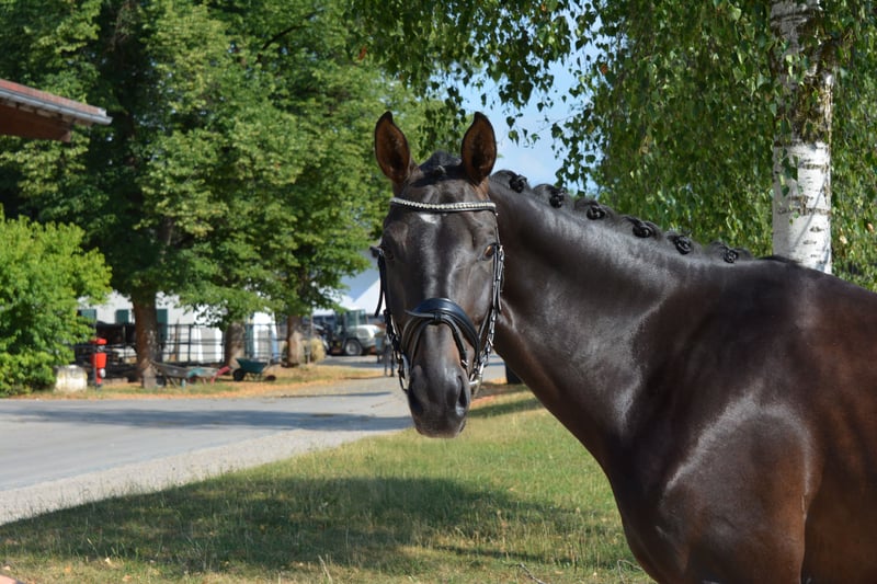 This stylish black mare is under saddle and can be ridden freely in all three basic gaits. Hope is a sensitive mare who needs a fine and skilled rider who can provide her with the necessary security and trust without applying too much pressure. With further training, she has a lot of potential for the dressage arena. She is sweet and people-oriented, making it enjoyable to work with her every day. Get to know Hope and come to the Riemer Pferdemontag on July 14, 2025!