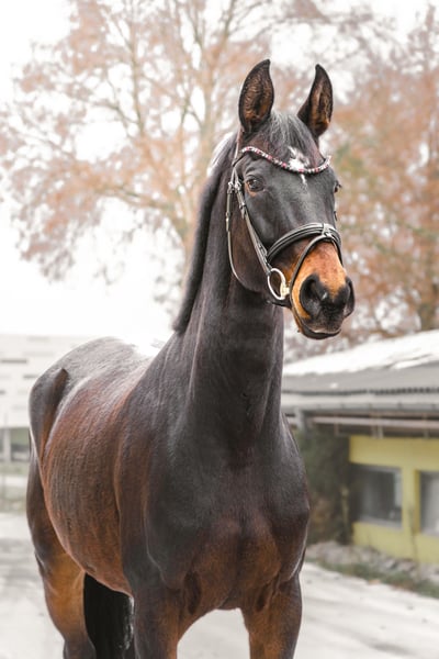 Wanda Born: 2019 Pedigree: Fürst Romancier x Likoto xx Color: Black-brown Height: approx. 176 cm Wanda is a super stylish, large-framed mare with a lot of expression and a very friendly, people-oriented nature. I bought Wanda directly from the breeder at the age of 1.5 years. She grew up in my open stable and is also familiar with box stalls and paddocks. Wanda was started under saddle in 2023/2024 and showed to be light in the hand and comfortable to sit on. Currently, she has a Vitalis foal at foot until the end of October 2025 – the birth was uncomplicated, and Wanda is a great mother mare who is always happy to show her foal. Her offspring already impress with a lot of type and quality. The Vitalis foal is already sold. For May 2026, she is in foal to Vivamor (Viva Gold x Sir Donnerhall) – a promising pairing for sport and breeding. https://damildressage.com/stallions/C2JSsDbh6hUrCErvKWfS I wish for this wonderful mare a first-class place where her valuable lineage is appreciated and promoted. X-ray images from the purchase are available. The mare can be viewed at any time. Location: OÖ District Rohrbach 0043 6608456422