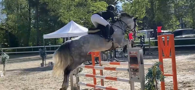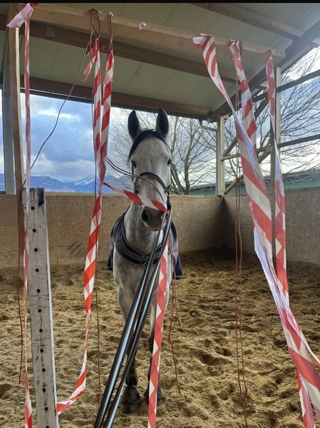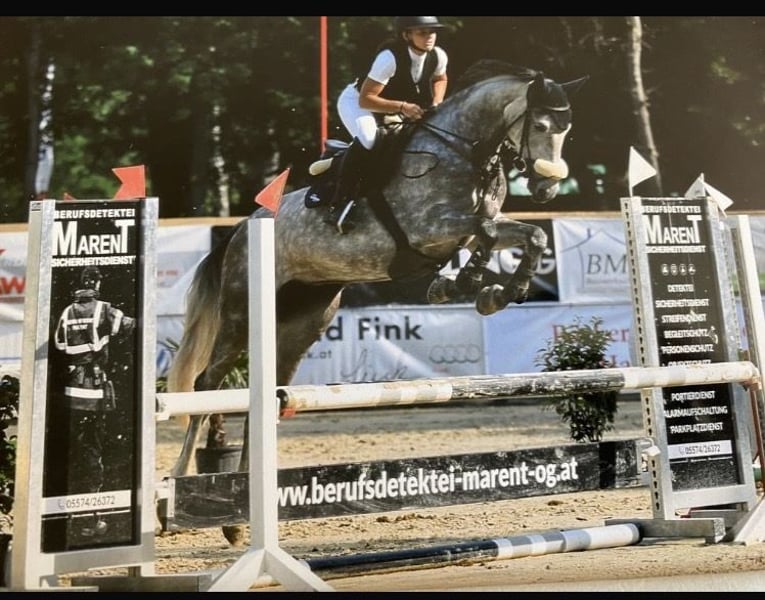 For sale: Austrian Warmblood – Show Jumping Mare (2018, grey, 16.1 hh) We are pleased to offer an elegant and talented Austrian Warmblood mare for sale. Born in 2018, this grey mare stands at an impressive 16.1 hands and impresses with her striking appearance as well as her promising jumping abilities. The mare is well-trained and has a solid basic education in jumping. She demonstrates a refined jumping technique and good scope over fences. With her elegant presence and friendly temperament, she is a valuable addition for any rider who values quality and character. If interested, we look forward to hearing from you to discuss further details and to arrange a viewing. Videos available upon request.