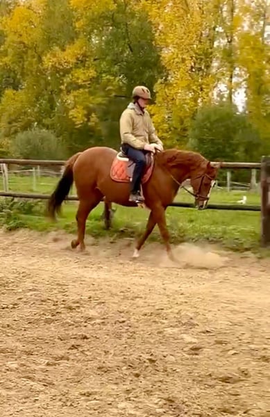 Mr. Medicine is a beautiful, glossy chestnut gelding with a pedigree, born on April 23, 2018. He has mainly been ridden for leisure and confidently masters the three basic gaits (walk, trot, and canter) correctly and smoothly. His previous owner also jumped with him. I have not continued this due to age (50+) and professional commitments, but with a little refresher, he can certainly do it again. Mr. Medicine is an honest horse with a lively and willing-to-work character. He enjoys collaborating and is eager to learn. His qualities shine best with a rider who provides him with confidence and clear guidance. He is a friendly, curious, and enthusiastic horse who approaches work with pleasure. In handling, he is polite, enjoys attention, and stands calmly for the farrier. He is offered for sale including full equipment, consisting of (see photos): Prestige saddle Stirrups and leathers Bridle Saddle pad Girth If you have your own suitable equipment, this can of course be deducted from the purchase price. More information and videos can be provided upon request. 📩 Contact: f.de.paepe@telenet.be (Erpe-Mere region) PS: It would mean a lot to me to occasionally hear how he’s doing. He holds a special place in my heart, and I hope he finds someone who enjoys him just as much as I have.